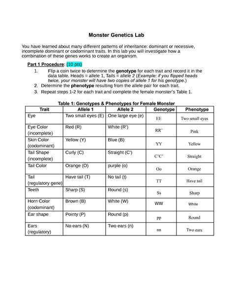 Read monster genetics lab answer key Tutorial Free Reading PDF